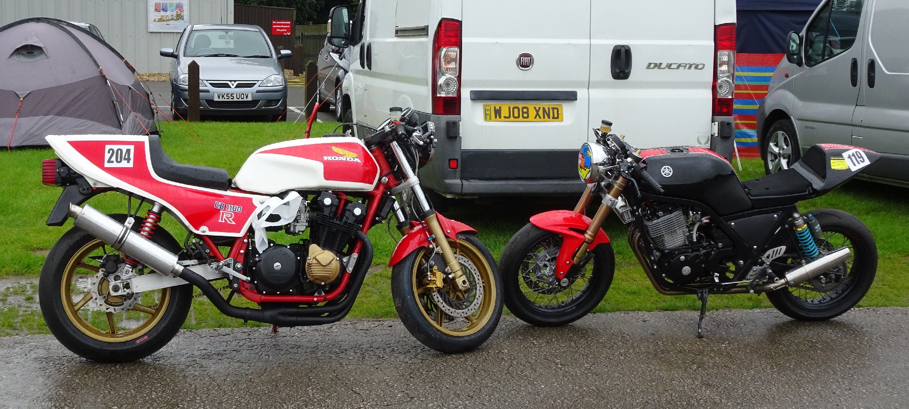 Plenty of DS members were spotted out on track, misbehaving in the moped parade or fettling some cool bike in the paddock. The weather on Saturday was bad enough to close the track, but no-one moaned - this weekend is as much about catching up with mates as it is grinding your kneesliders away. Expertly arranged by Classic Bike Trackdays and Practical Sportsbikes as usual.