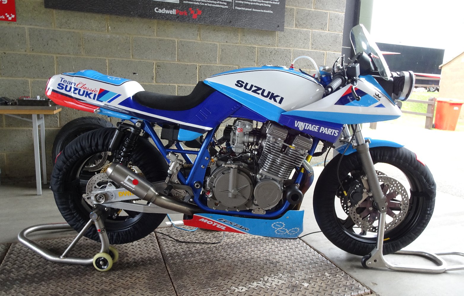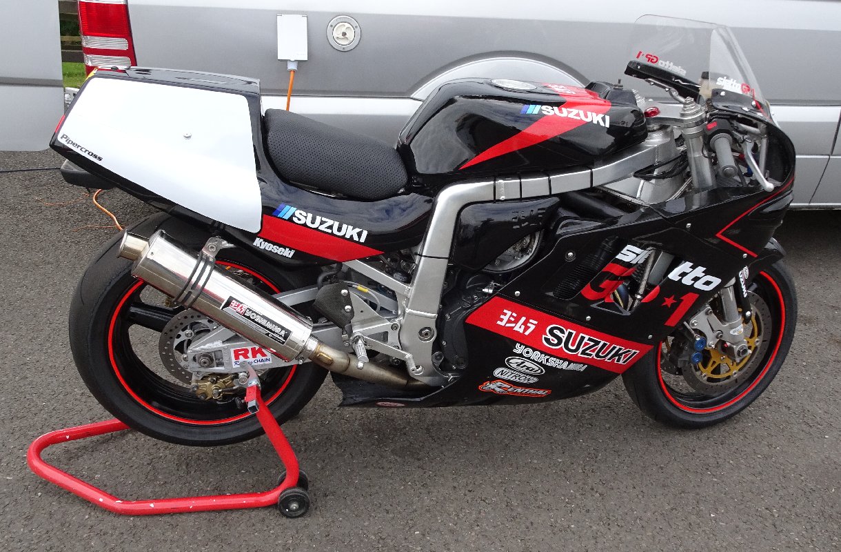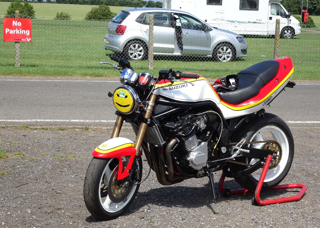 As a bonus, Team Classic Suzuki turned up Sunday morning with their money-no-object Katana endurance racer, for TV star and housewives favourite Guy Martin to take round for a few shakedown laps in preparation for Spa next weekend.
